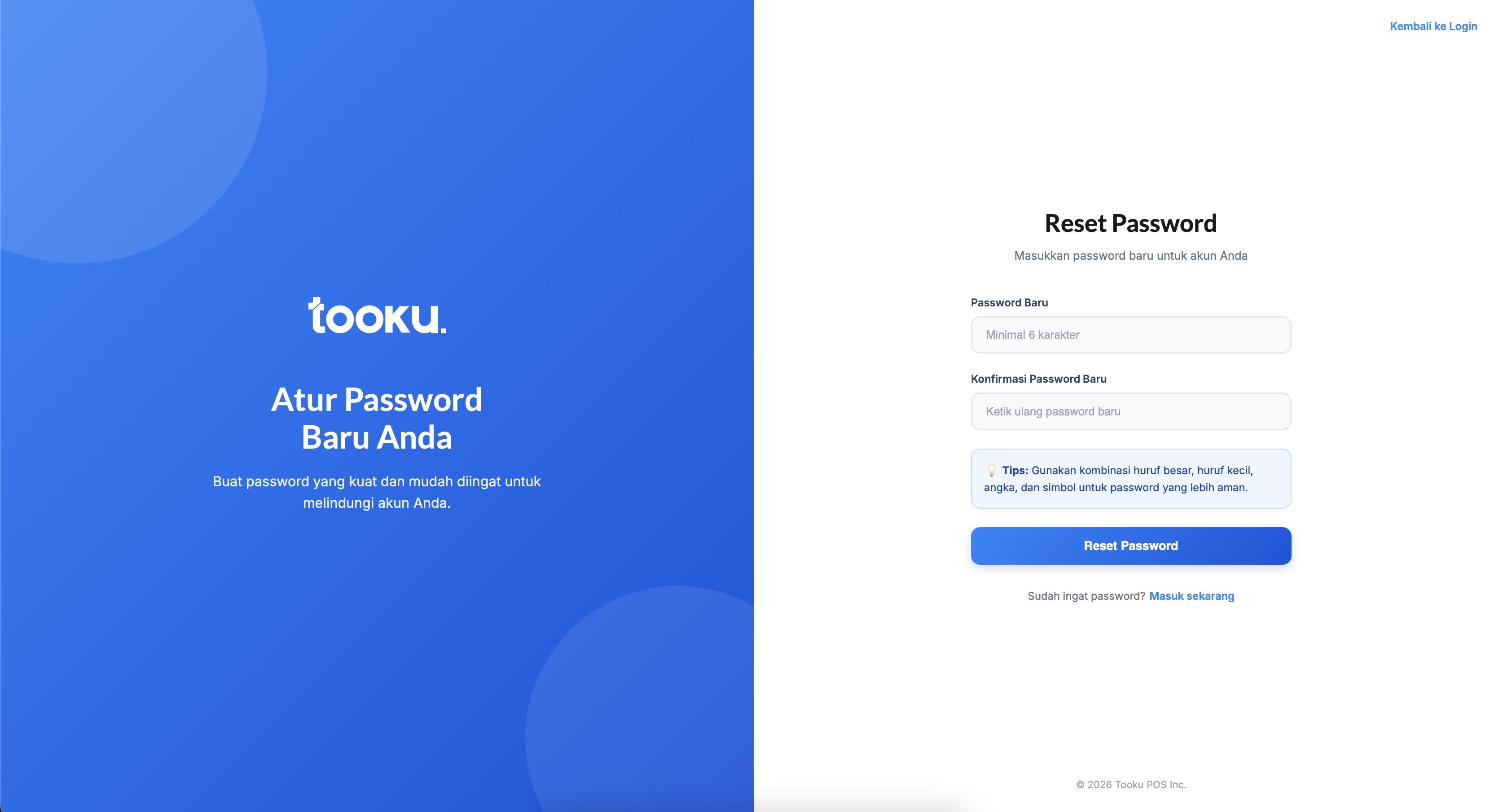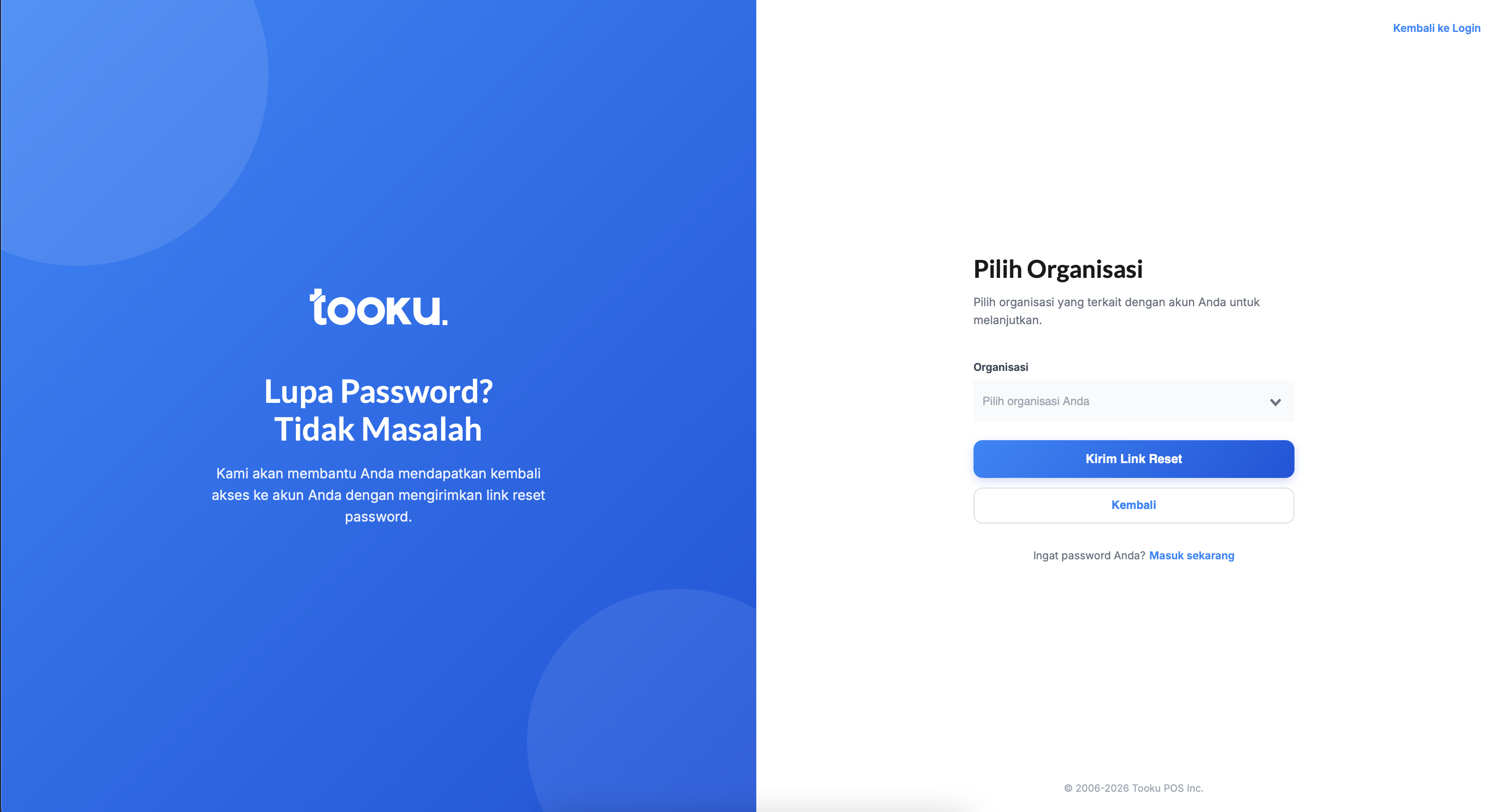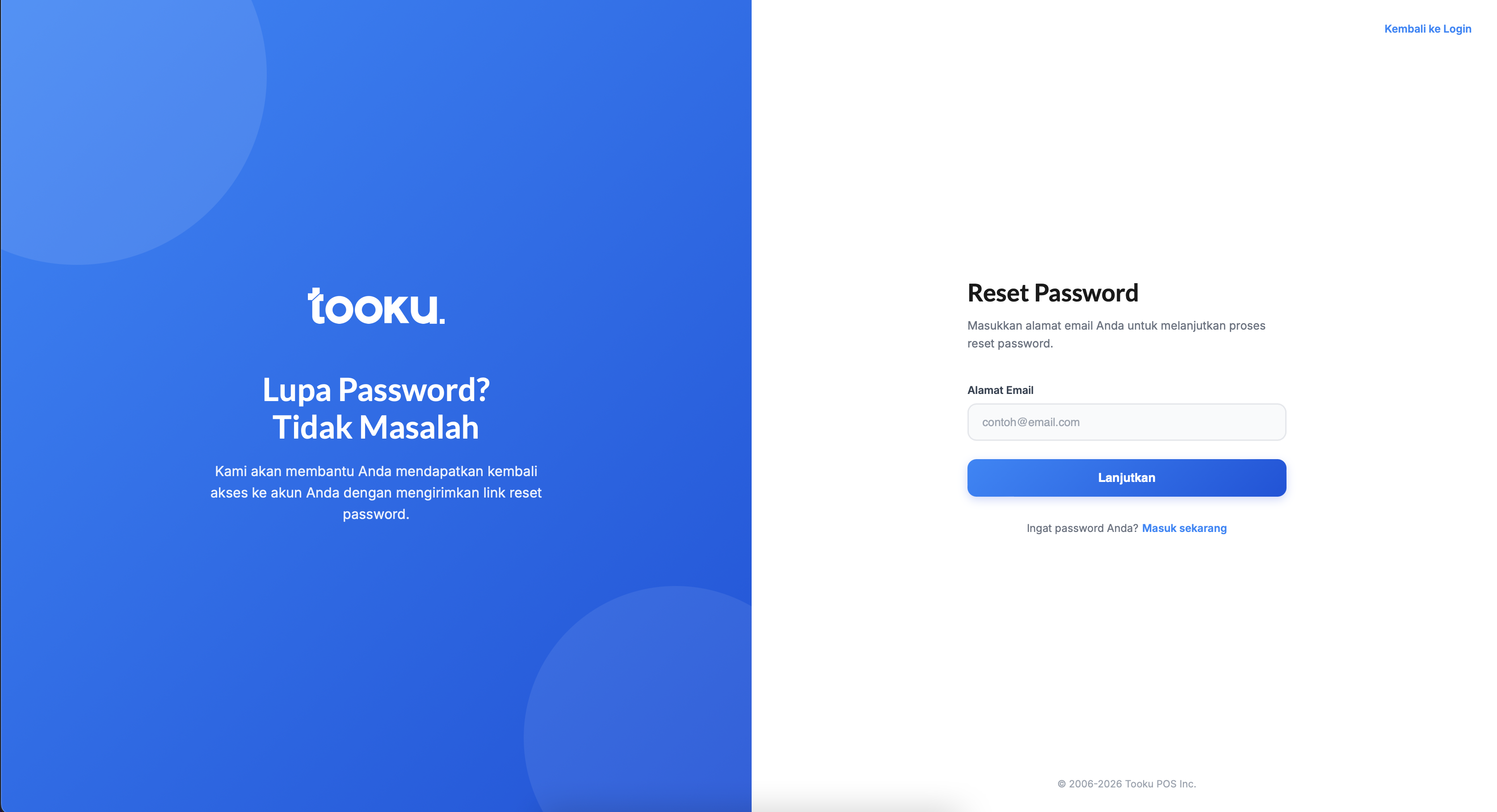Halaman ini digunakan jika Anda lupa password akun Tooku POS. -