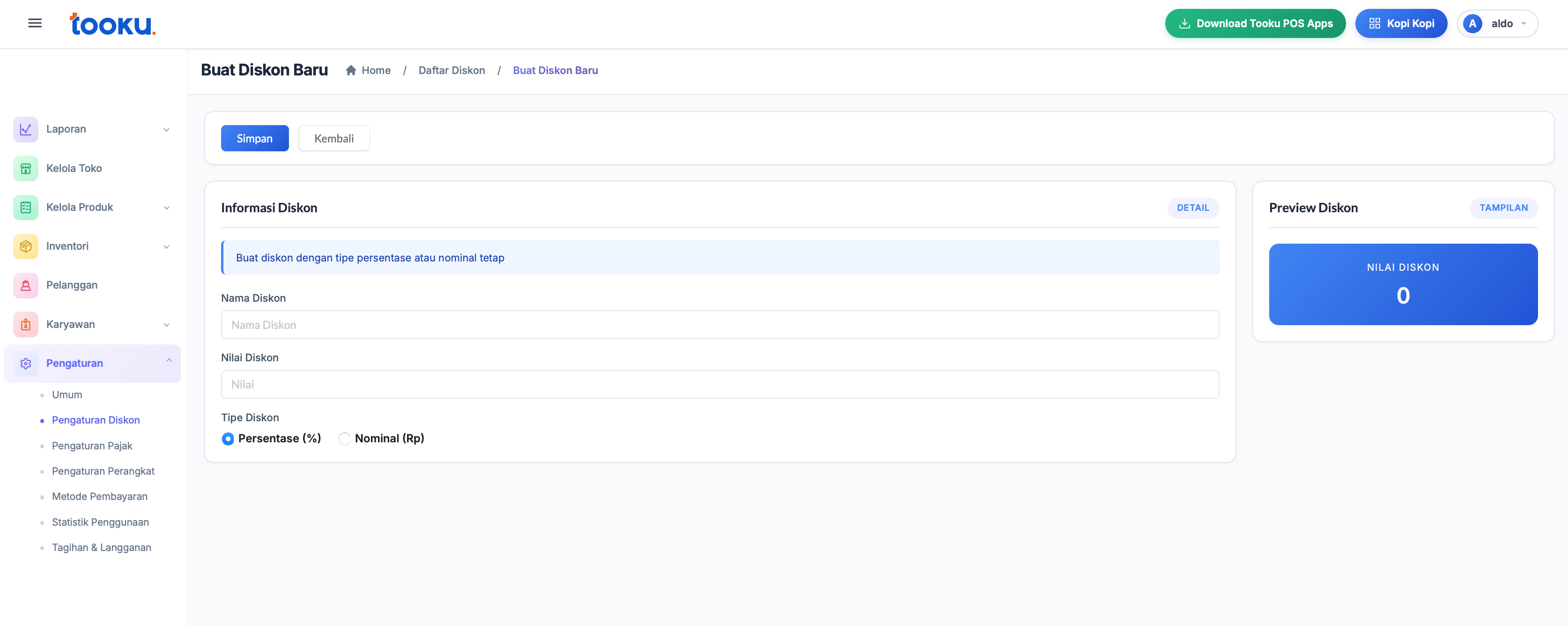 Preview nilai diskon akan tampil di sisi kanan layar.