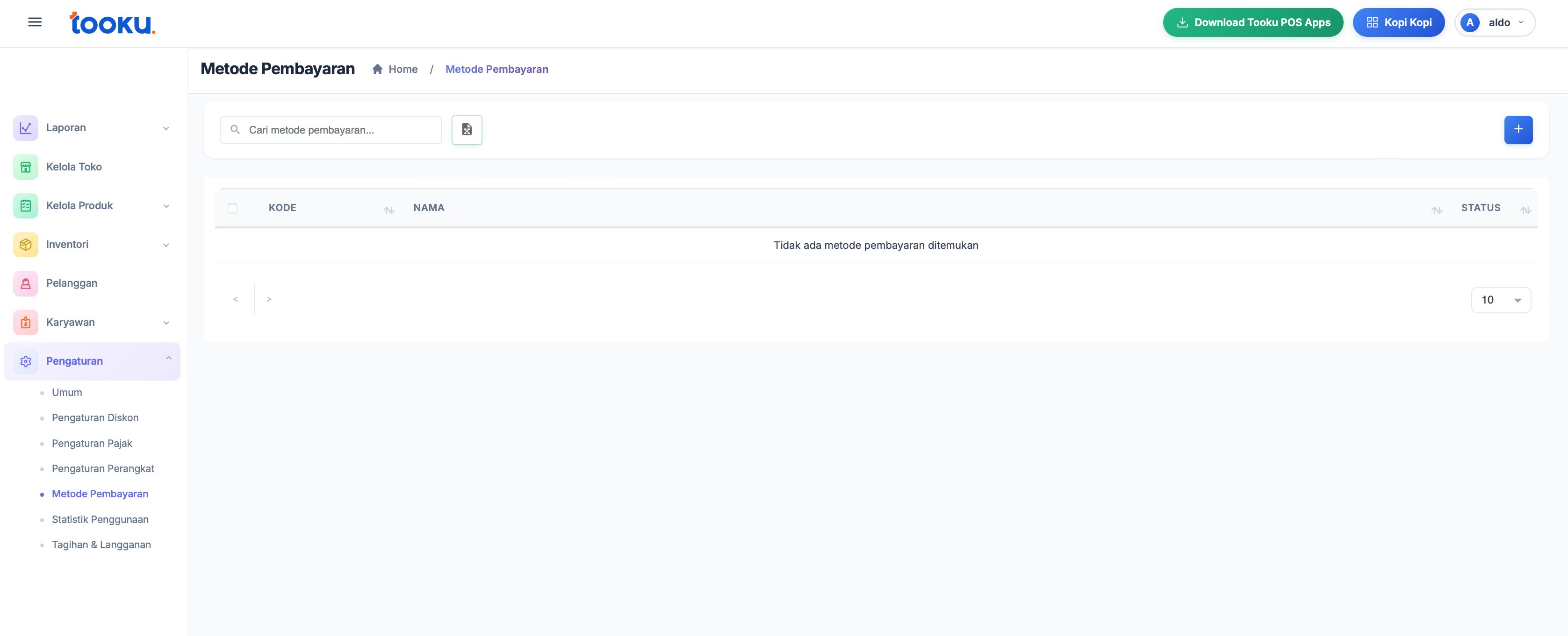 Metode pembayaran yang aktif akan muncul di aplikasi POS dan dapat dipilih saat melakukan transaksi.