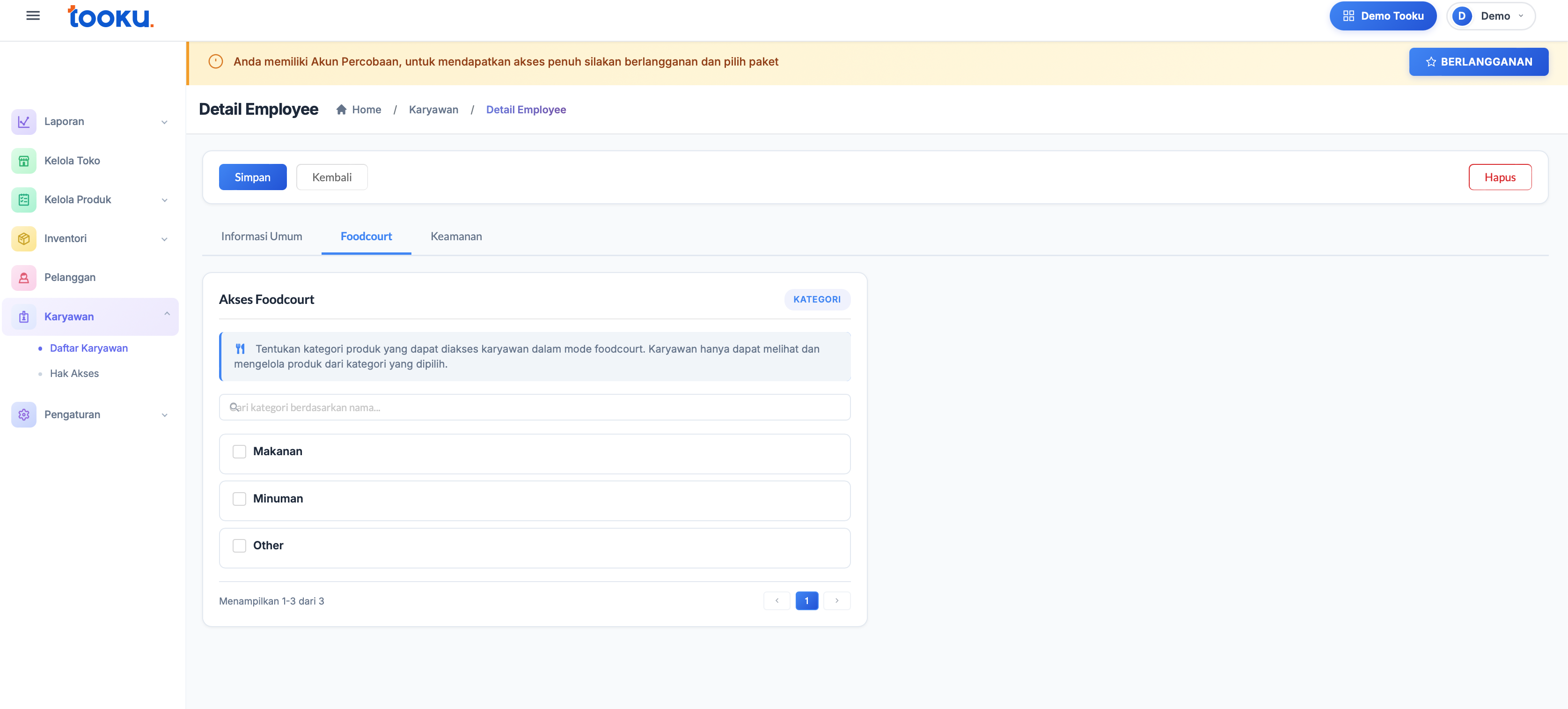 Karyawan hanya bisa melihat dan mengelola produk dari kategori yang dipilih.
